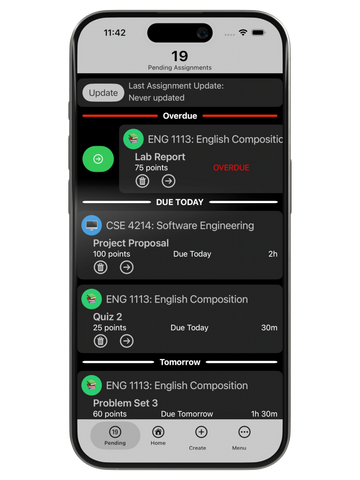 Was an assignment only given out in class? No problem! You can add custom assignments to any course in Study Placer.