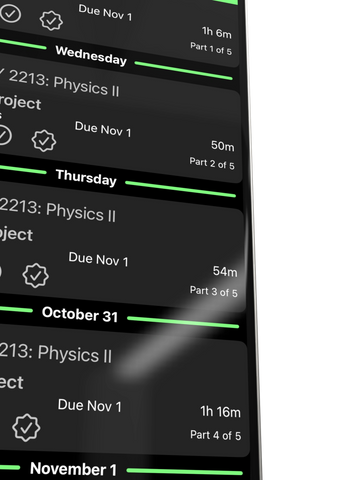 Tired of being overwhelmed by huge assignments? Study Placer splits big assignments into bite-size parts so you can make steady and manageable progress every day.